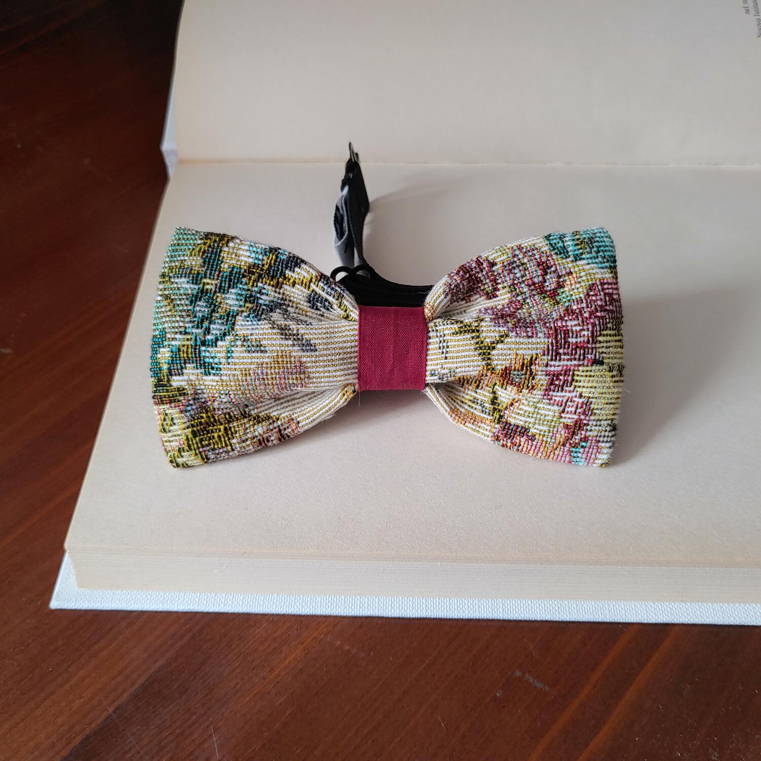 Un papillon cucito a mano realizzato con tessuto sartoriale in lana, cashmere, tweed, jacquard. Un piccolo pensiero prezioso.